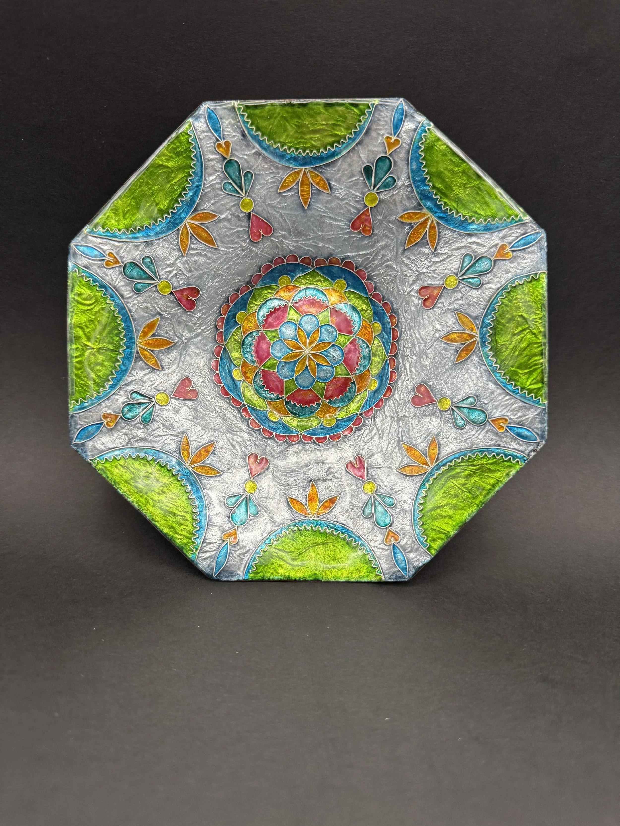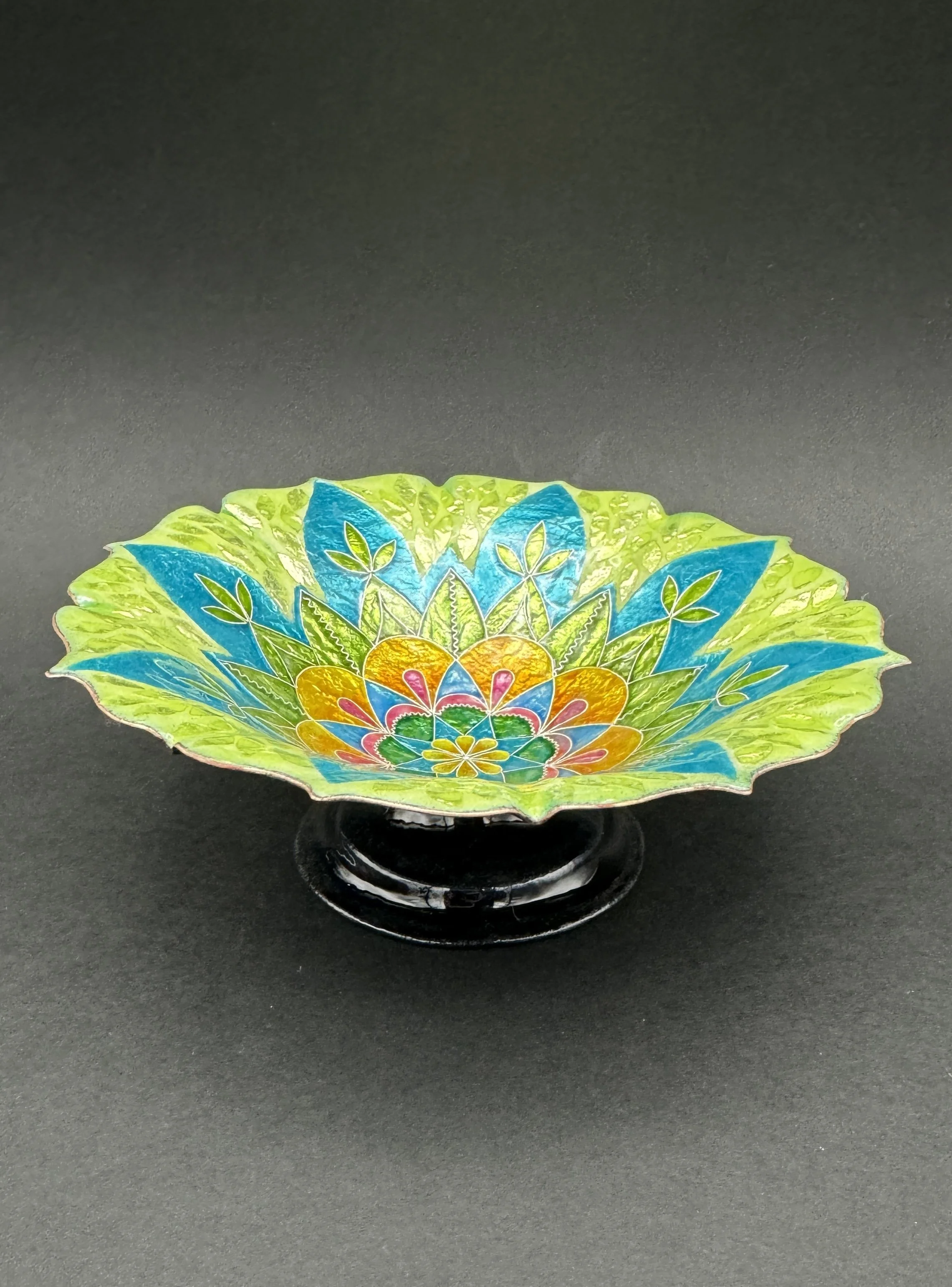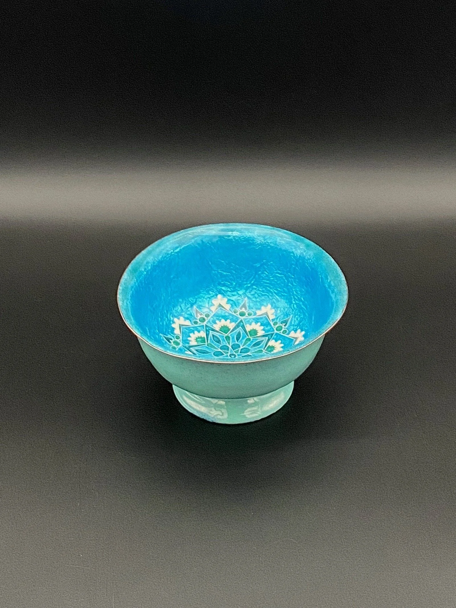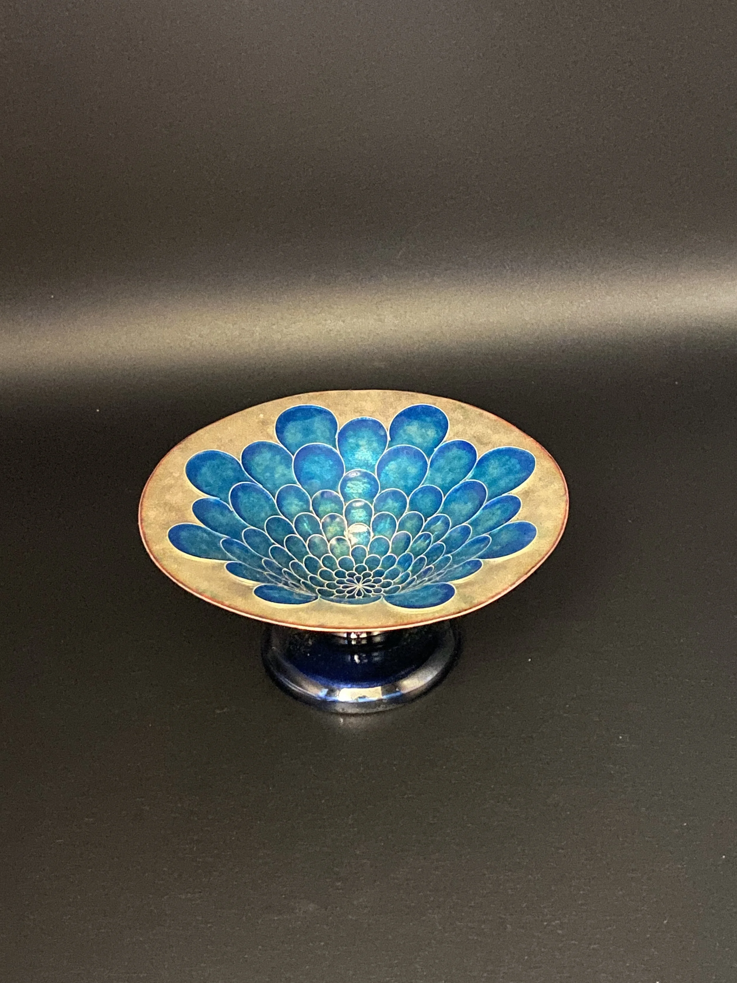 I love to enamel on vintage copper vessels. Enameling on a three dimensional surface is an exciting challenge requiring patience and methodical precision. My cloisonné work on a vessel is a type of meditation for me, designing and bending the wires while the piece becomes a work of art.